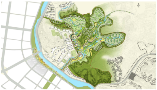 場地空間設(shè)計(jì):通過對(duì)場地的分析,在標(biāo)高295m以下,山體較為平緩,該區(qū)域的人為活動(dòng)頻繁,適宜做城市設(shè)計(jì)。整合場地空間,將城市的構(gòu)造與自然環(huán)境相連接。