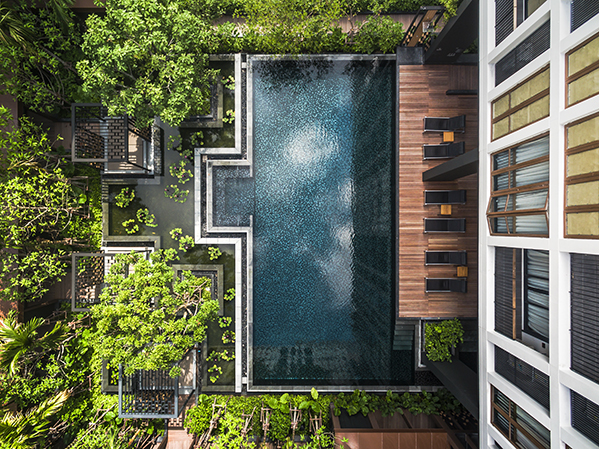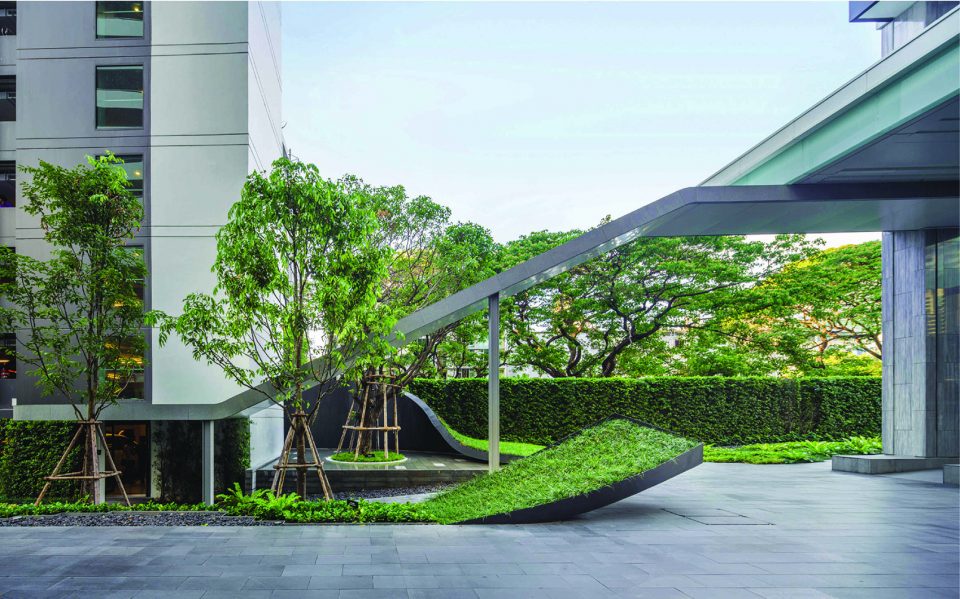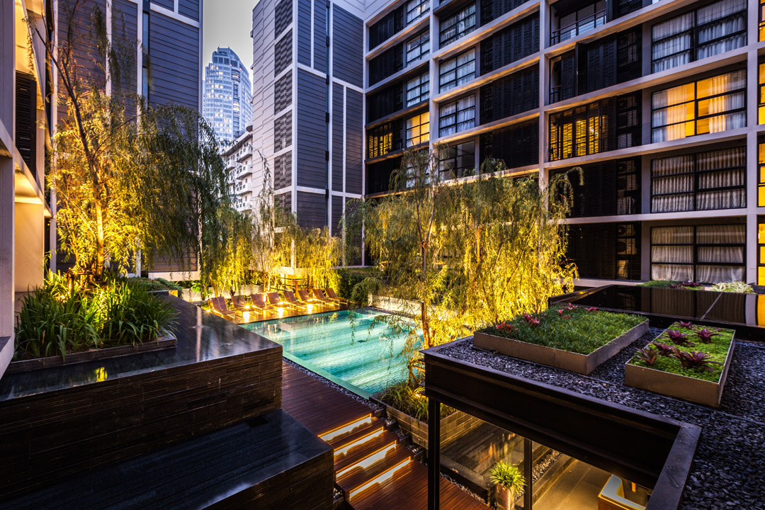 ?泰國城市中一個安靜的公寓公共花園,這個花園只依附一獨棟公寓存在,面積有限卻層次豐富,空間多重。花園能夠支持多種活動且保證彼此不被打擾,同時滿足了樓上的用戶朝下俯瞰時的美觀。
