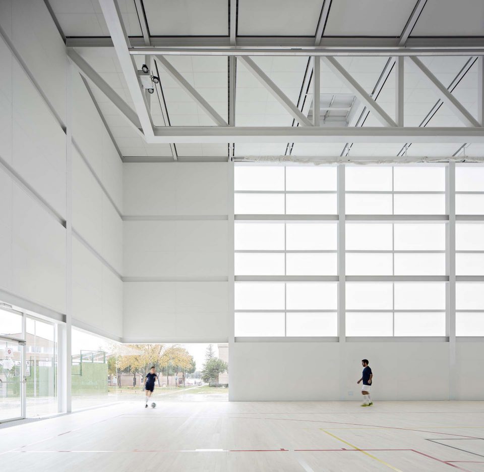 Designed for the campus of the Francisco de Vitoria University in Pozuelo (Madrid), the building houses a sports center and classroom complex. It includes the use of sports halls, multi-purpose rooms, a gymnasium, swimming pool, physiotherapy, etc. The sports complex can also be used as a large multi-purpose area and meeting hall, facilitating a range of university activities.