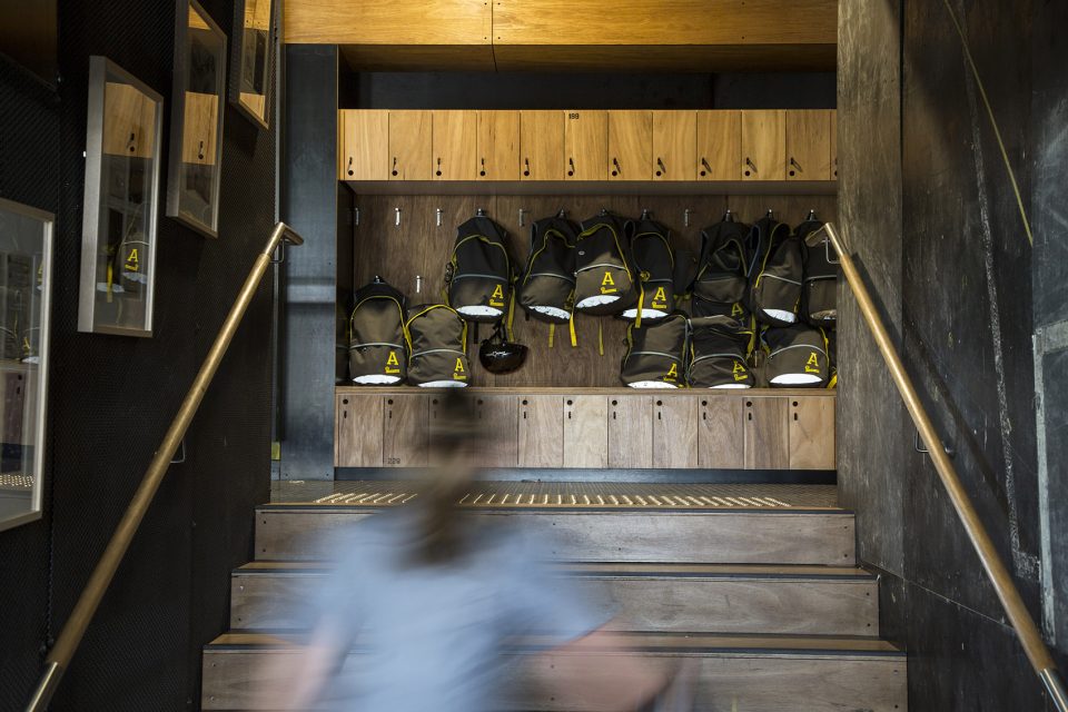 設(shè)計將現(xiàn)有的夾層和底層空間改造為適應(yīng)大型活動的學(xué)習(xí)性空間,并將 Drill 大廳保留為演藝和教學(xué)空間。兩層空間之間由一系列木制的看臺連接,既尊重了原有建筑空間的體量,由為大型團體活動提供了必要的觀賞設(shè)施。