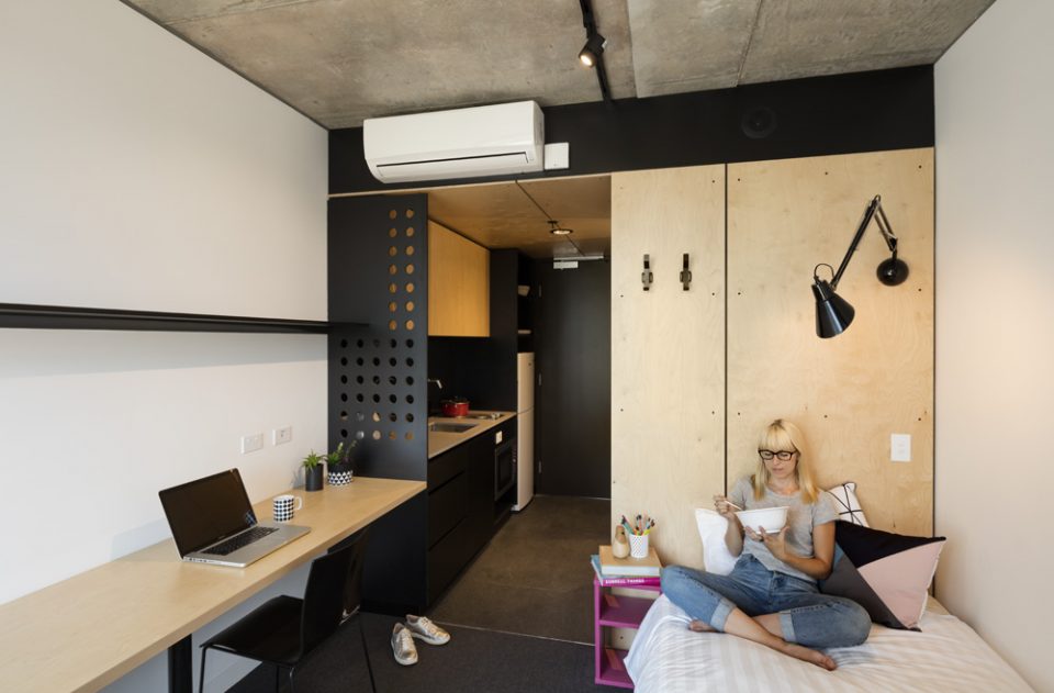 項目坐落于墨爾本本多拉地區(qū),是RMIT大學(xué)的學(xué)生公寓。RMA事務(wù)所受RMIT所托設(shè)計學(xué)生公寓,其設(shè)計將為在校生提供最好的居住環(huán)境。RMA事務(wù)所與RMIT以及公寓的經(jīng)營者Unilodge緊密合作,保證居住在公寓里的人可以享受到公共空間帶來的各種便利,并在核心區(qū)設(shè)計充足的學(xué)生活動功能。該建筑的設(shè)計是簡單的偏斜十字架,被澳大利亞古老的植物環(huán)繞。這些樹木包括以Wurundjeri氏族祖先命名的Keelbundoora Scarred Trees。