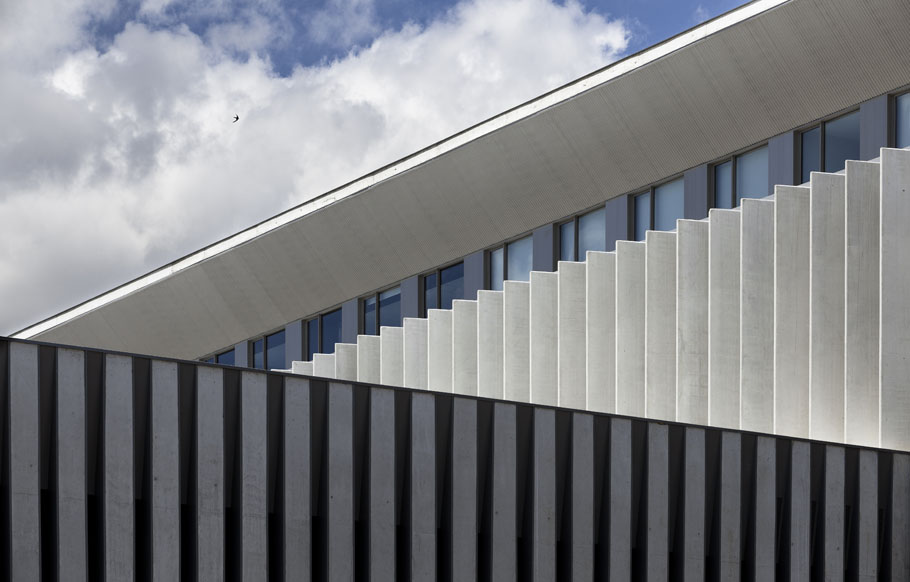 潘普洛納的納瓦拉大學(xué)新經(jīng)濟(jì)系樓去年在西班牙完工。位于小山坡上的新大樓融入校園綠色環(huán)境中,安靜的俯瞰著坡下的河流。建筑主要用材為清水混凝土,玻璃,金屬,其中清水混凝土是主角。雅致的清水混凝土構(gòu)建優(yōu)美的分布在立面,演樂出動人的節(jié)奏。高精度的施工技術(shù),讓作品具備極高質(zhì)量。