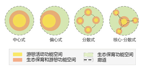 1. 三圈層空間結(jié)構(gòu)從外至里,依次為:生態(tài)保育功能區(qū)、生態(tài)保育和游憩功能區(qū)、游憩活動功能區(qū);